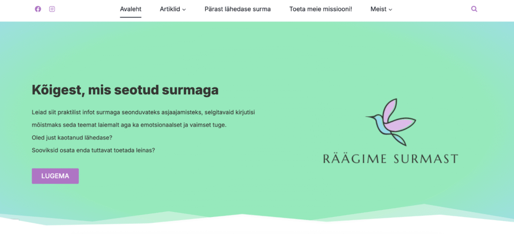 Meile on väga oluline ka teie kogemus meie uue väljanägemisega lehel. Jaga julgelt oma tagasisidet, et saaksime Räägime Surmast lehe veelgi lugejasõbralikumaks muuta.